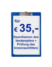 Wir bieten Ihnen, unabhängig vom Arbeitsaufwand, die Desinfektion der Klimaanlage zu einem Festpreis an.